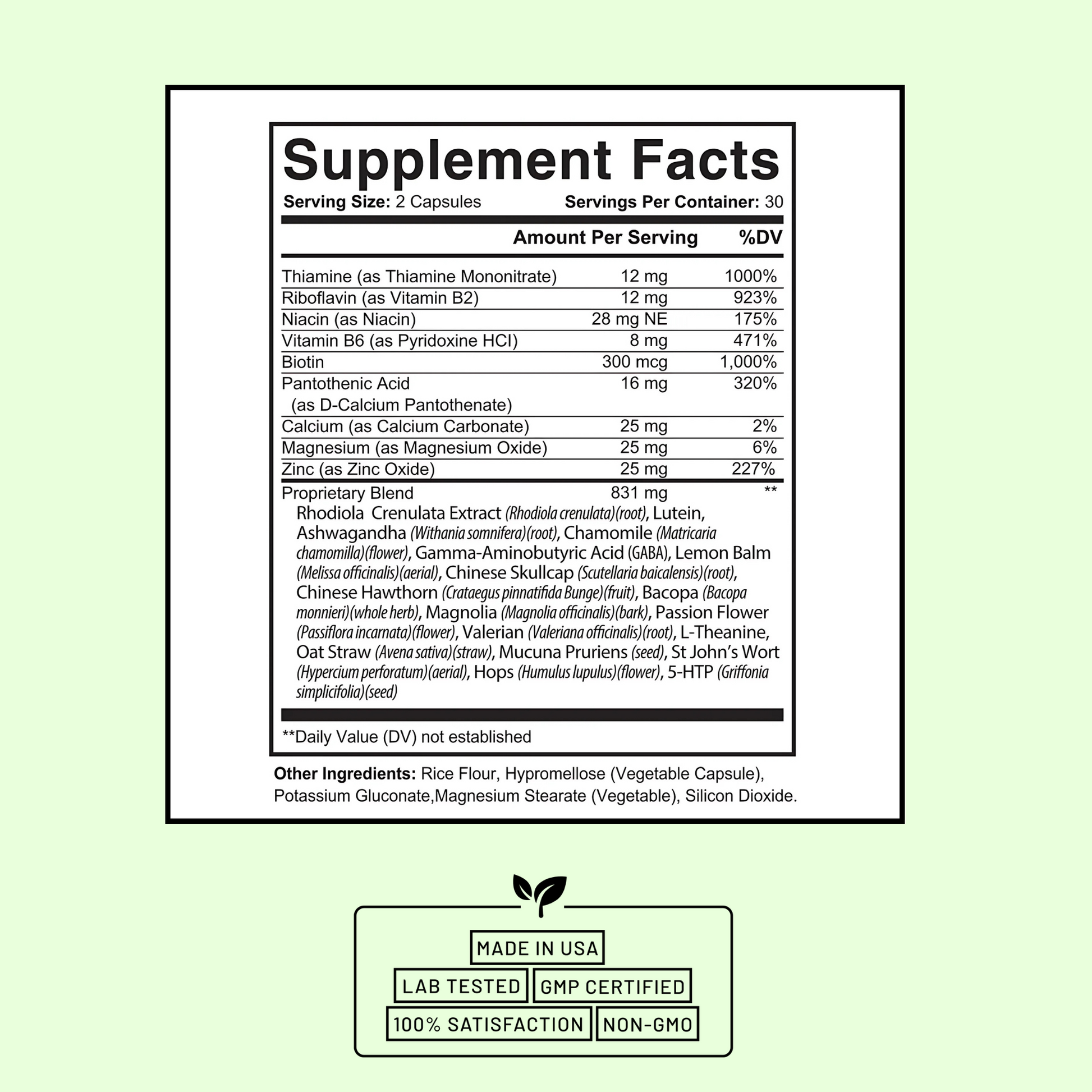 • Biotin & Pantothenic Acid: Promotes emotional stability and reduces anxiety.